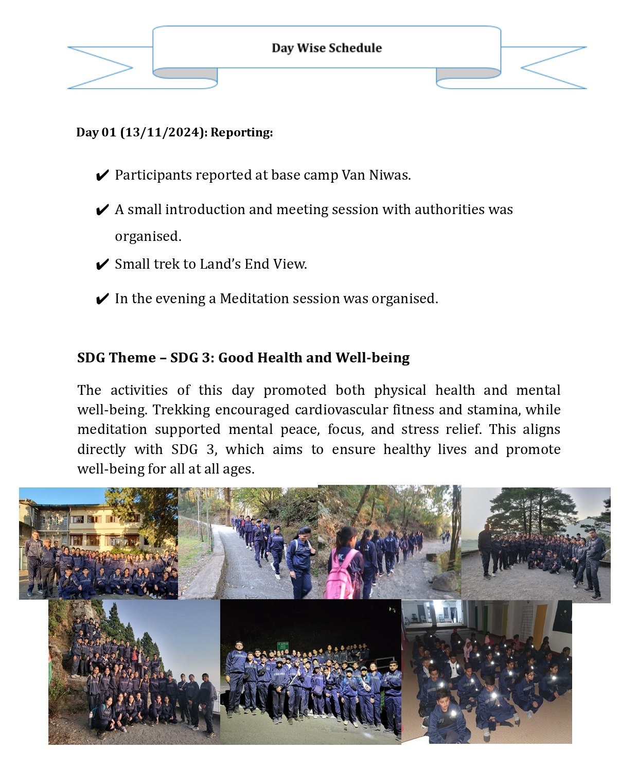 ✔ Participants reported at base camp Van Niwas.